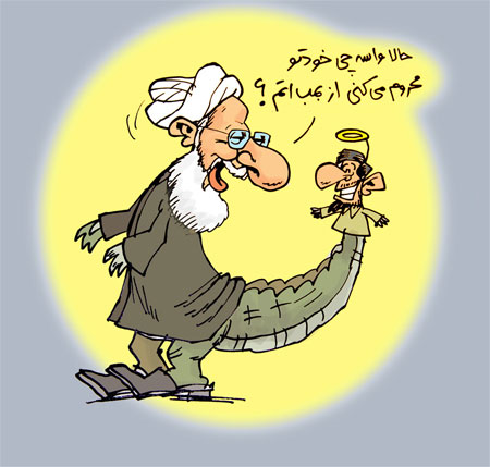 علت دهان گشاد احمدی نژاد کشف شد - کاریکاتور
